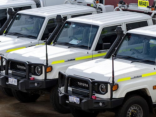 Available for hire now is our modern range of light mine-spec vehicles, fully equipped to ensure you meet your safety and regulatory requirements. You can pick up from our depot in Perth, or we can deliver your vehicles to any location throughout WA